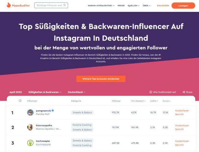 Auf der Suche nach einem Top-Influencer für den Bereich Süßigkeiten und Backwaren kommt man laut Hypeauditor, dem bekannten Influencer-Analyse-Tool, nicht am Social-Media-Account von Foodnewsgermany vorbei.